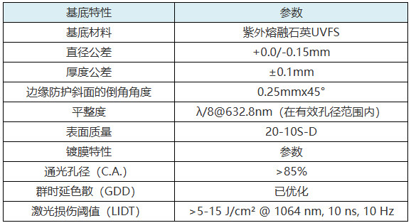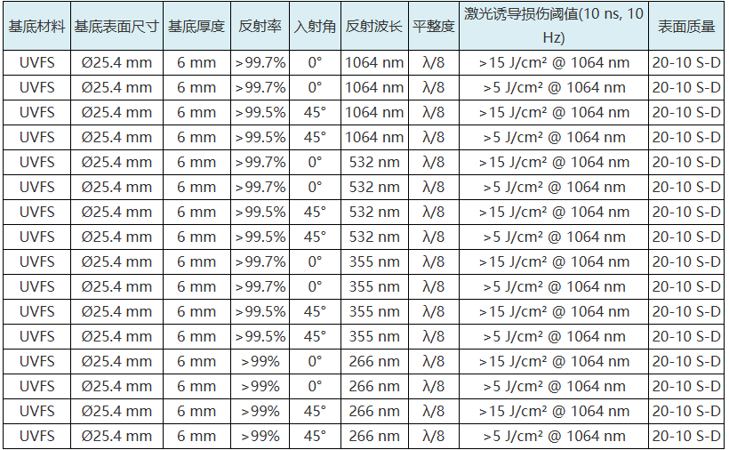 激光线高反反射镜的基底参数如下: